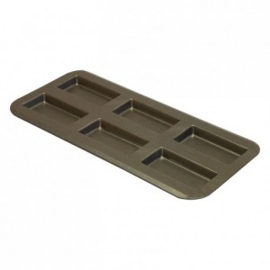 Financier pan, stamped, 6 imprints of 98x48 mm each, non-stick. L 380 mm W 180 mm H 13 mm