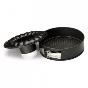 Pre-order product (+/- 8 days + delivery)Medium deep round fluted tart mould, loose bottom, non-stick. Pack of 3. Ø top 240 mm Ø bottom 225 mm H 35 mm