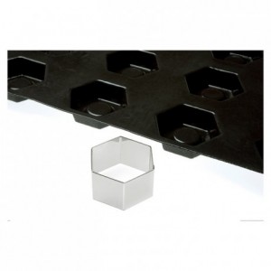 Pre-order product (2 days + delivery)Cutter hexagon for biscuits bases stainless steel, with reinforced body. For Flexipan ref. 336144. Cutters designed for cutting biscuits meant to be used as bases for individual cakes formed in Flexipan®.