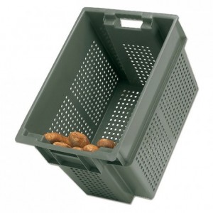 Pre-order product (2 days + delivery)Stackable bread basket. Plain bottom, borehole sides. Suitable size for storage and handling of special breads, rolls, short bread, country bread, etc. White polyethylene.