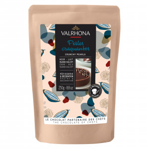 Biscuit cereals coated in 87% milk chocolate (36% cocoa minimum, pure cocoa butter). A crunchy cereal filling coated with Caramélia, a delicious milk chocolate from Valrhona, with a distinct caramel flavor with subtle savory aromas and notes of biscuit. These tasty treats are particularly suitable for cold and iced preparations such as mousses,...