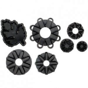 Set of 4 JEM cutters in 6-petal daisy cutters in the sizes: 38, 26, 24 and 18 mm.