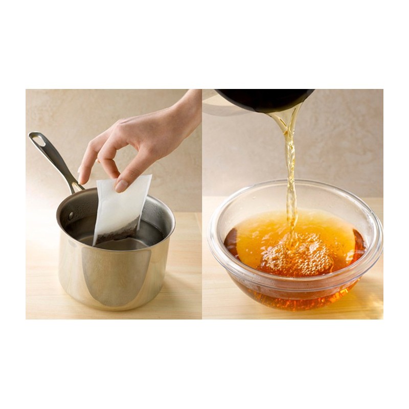 Preparation: immerse the sachet in 33 cl of simmering water, cover and let it infuse for 7 minutes on a low heat with constant stirring.