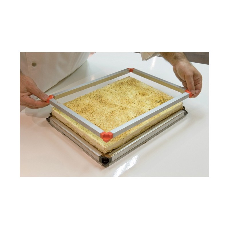 Exclusive system created by Matfer for easy and simple assembly of entremets, mousses, opera cakes in perfect uniform layers of 2, 3 or even more flavours.