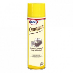 Liquid vegetable oil, spray conditionned. Used on all types of pans. Long conservation, odorless, do not go rancid.