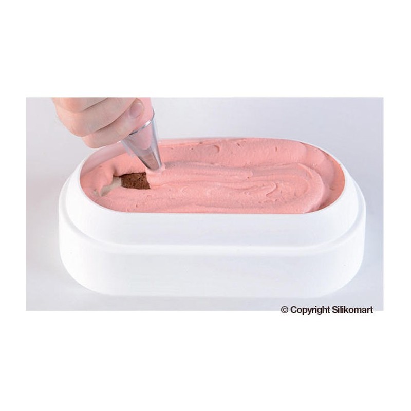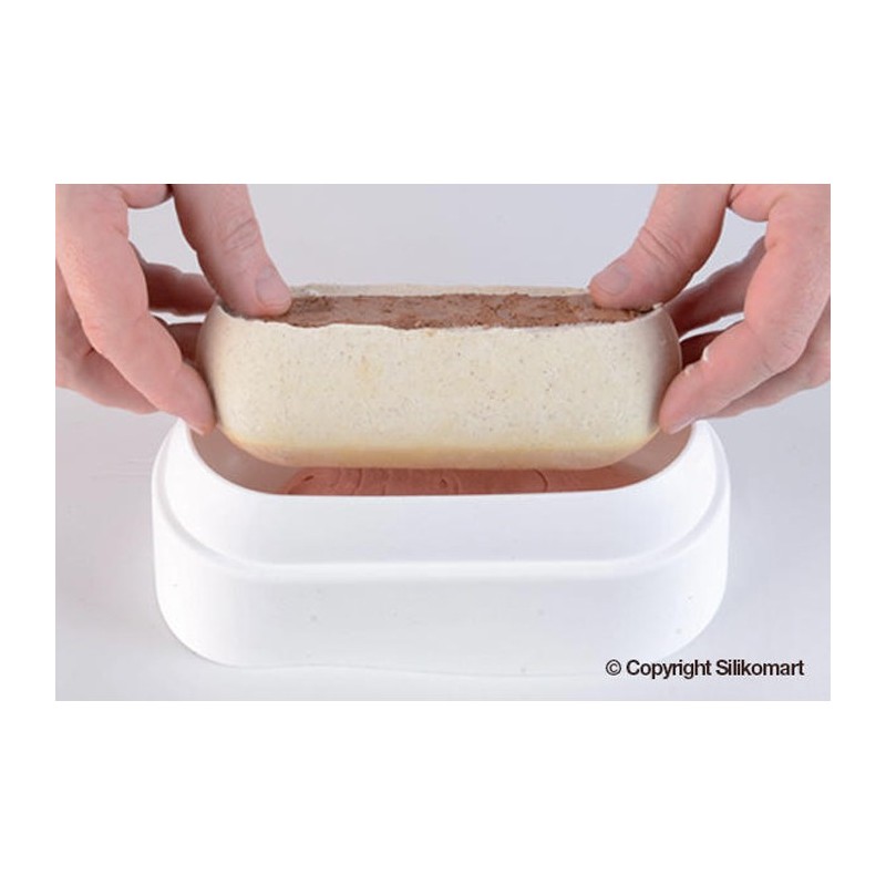 Sinousity and harmony are perfectly combined in this new mould provided with a special and innovative border in the upper part which gives a particular round shape to the base of pastries. Mr Pillow, created as a modern version of the classic log, can be matched with Silikomart Professional mould Jr Pillow for original inserts which give an amazing effect when cutting. Thanks to its versatility and resistance to temperature ranges between -60°C (-76°F) and +230°C (+446°F), Mr Pillow is suitable both for blast chiller and for the oven.