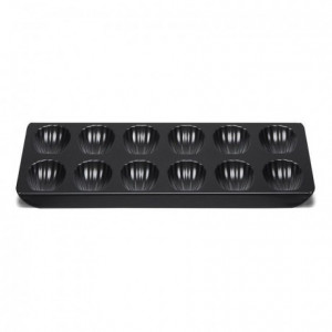 Plaque à madeleines, 12 empreintes de 80 mm, bord roulé, anti-adhérent. L 395 mm l 200 mm H 17 mm