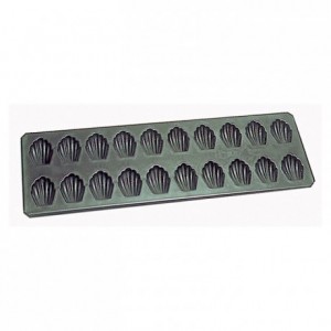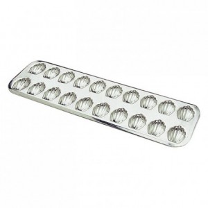 Plaque à madeleinettes, 20 empreintes de 42 mm, bord roulé, anti-adhérent. L 395 mm l 125 mm H 13 mm