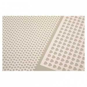 Envoyé par Matfer en 24/48 h (Service+)Grille pochoir "coeurs" 10 x 15 en plastique. Pochoir permettant de décorer rapidement une plaque de biscuit. Format pâtissier : 600 x 400 mm.