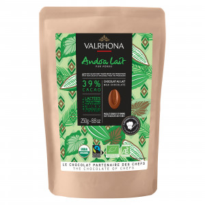 Fèves de chocolat noir biologique et équitable Valrhona Andoa Noire 70% de cacao, Grand Cru Pérou. Pur beurre de cacao Frais et Amer. Ce Grand Chocolat offre une attaque en fraîcheur et une amertume puissante et exceptionnelle qui se développent et se nuancent au cours de la dégustation.