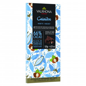 Tablette de chocolat noir Valrhona Caraïbe 66% de cacao, Mariage de Grands Crus. Pur beurre de cacao Equilibré et Voluptueux. Dans les îles et sur la côte de la mer des Caraïbes, les hommes ont cultivé depuis des générations les cacaoyers Trinitario sur de riches sols de limon argileux surnommés "Terre à chocolat". L'assemblage de ces cacaos donne à...