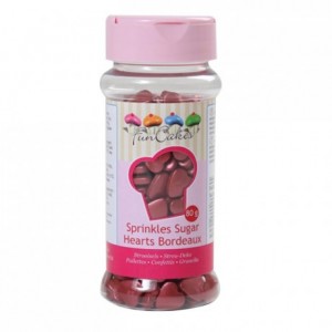 D'amusant petits coeurs bordeaux en sucre de FunCakes. Adaptés pour la décoration des gâteaux et des cupcakes, ainsi que des brownies et autres biscuits. Astuce: Disposez les coeurs en rangée le long de vos gâteaux.