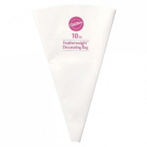 Sur commande (+/- 15 jours + livraison)Poche à pâtisserie de Wilton à usage multiple. Légère, solide et fabriquée en polyester flexible, elle garde sa souplesse au fil des utilisations. Recouverte d'une couche lipophobe, la poche résiste aux corps gras. Elle peut aussi bien être lavée à l'eau chaude qu'au lave-vaisselle. Les poches Featherweight de Wilton sont prêtes à l'emploi, puisqu'elles...