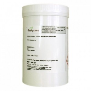 Cette pâte de noisette 100% pure est élaborée à partir de noisettes grillées puis broyées. Riche en goût, elle s’utilise dans toutes vos préparations salées ou sucrées. Applications : dans vos cakes, glaces, mousses, chocolats, ...etc. Sucrée ou mixée avec du caramel pour obtenir du praliné.