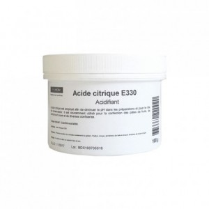 Acide citrique E330. L’acide citrique est naturellement présent dans de nombreux fruits, en particulier les agrumes. Employé en remplacement du jus de citron, il permet d'améliorer la conservation des aliments. Indispensable dans la conception des bonbons acidulés de notre enfance et des pâtes de fruits, l'acide citrique permet également d'ajouter un goût...