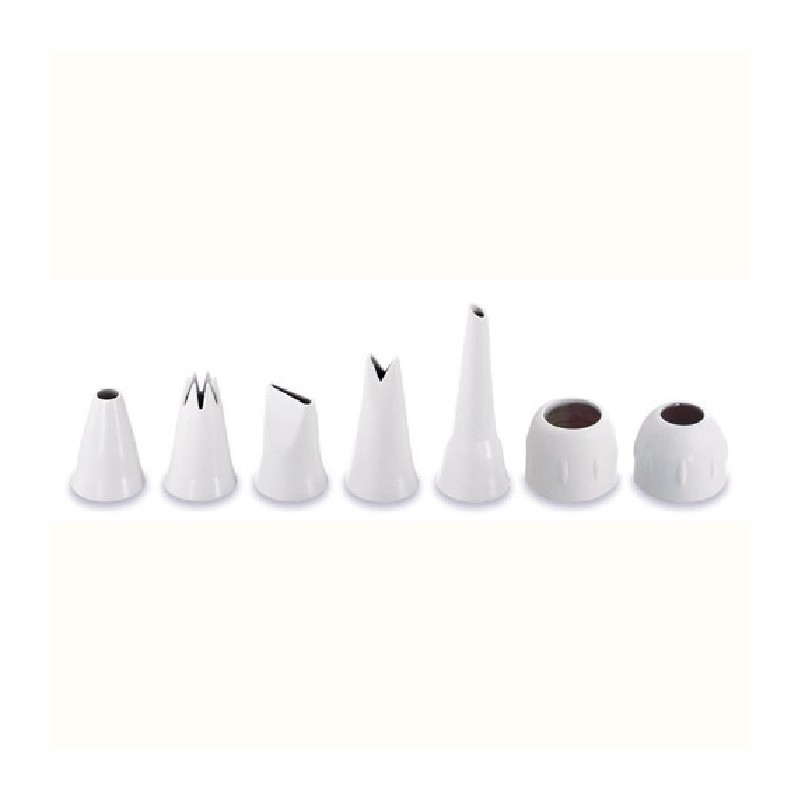 Les cinq douilles incluses rendent facile la décoration: une douille est prévue pour les cupcakes et autres, une autre douille ronde, une douille feuille, une douille étoile et une douille pétale.