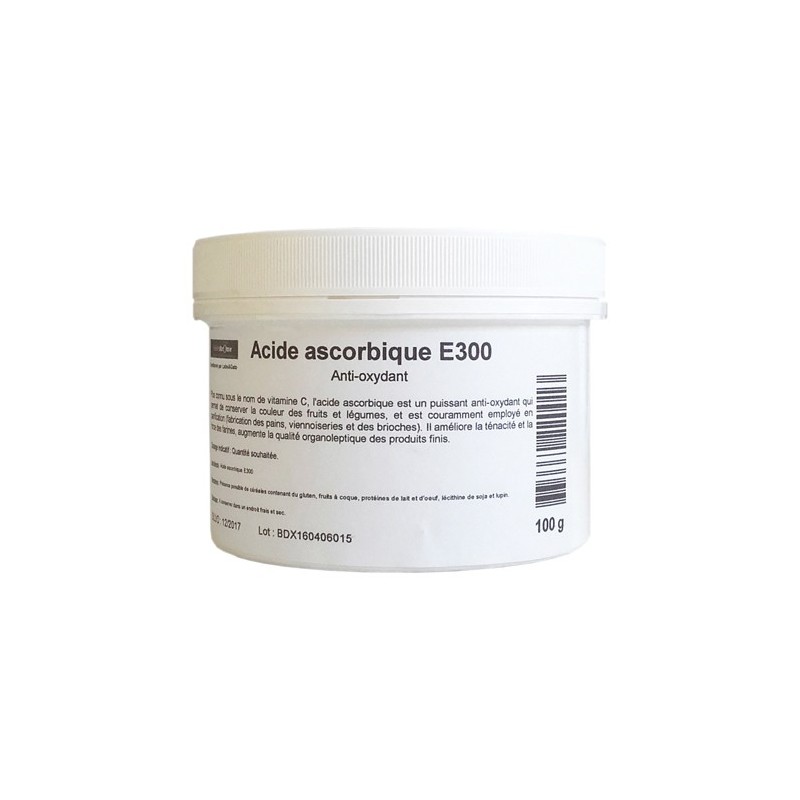 L'autre nom de l'acide ascorbique n'est autre que la vitamine C. Puissant antioxydant bien connu pour ses bienfaits sur l'organisme et allié des défenses immunitaires, il permet en cuisine de conserver la couleur des légumes verts en cuisson, et bloque l'oxydation des aliments qui noircissent une fois pelés (pomme, poire, banane, topinambour, artichaut…). En boucherie et charcuterie, il permet de conserver la couleur des viandes. En boulangerie et en viennoiserie, utilisé en faible quantité, il permet de conserver la couleur crème de la mie, augmente la ténacité et l'élasticité des pâtes pour une meilleure pousse.