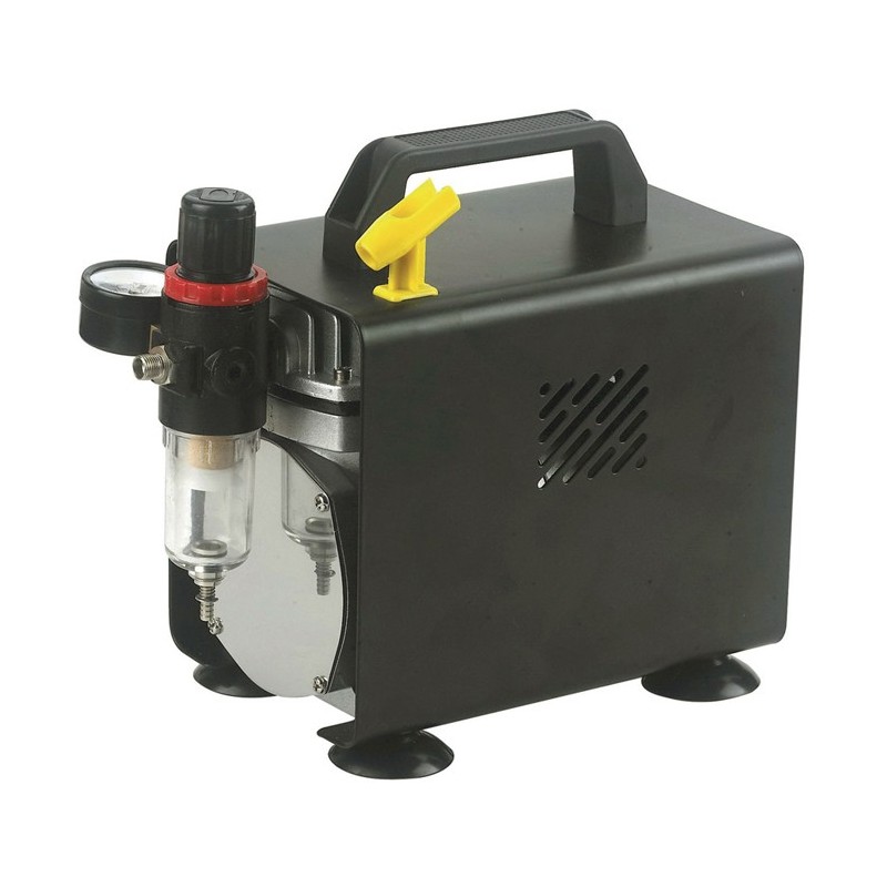 Compresseur sans huile, portable, automatique, avec manomètre : la mise en marche et en arrêt du moteur est actionnée et désactivée par la pression de l'aérographe.