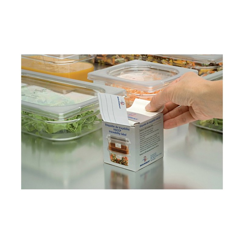 Ces étiquettes adhésives, compatibles avec tous les types de bacs gastronormes (acier inoxydable, polycarbonate, polypropylène) sont entièrement hydrosolubles lors du lavage et biodégradables à 100%. dissolution instantanée.