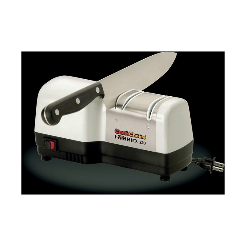 Modèle Hybrid™ combinant affûtage électrique et manuel par disques abrasifs de diamants. Affilage en deux étapes, la première électrique complétée par l’affûtage manuel avec le concept chef’s choice de double biseaux plus durable. Convient pour l’aiguisage de couteaux à lame lisse ou crantée. Réservé à un usage non intensif.