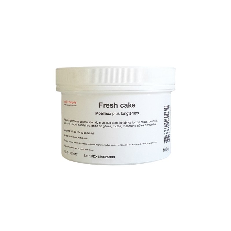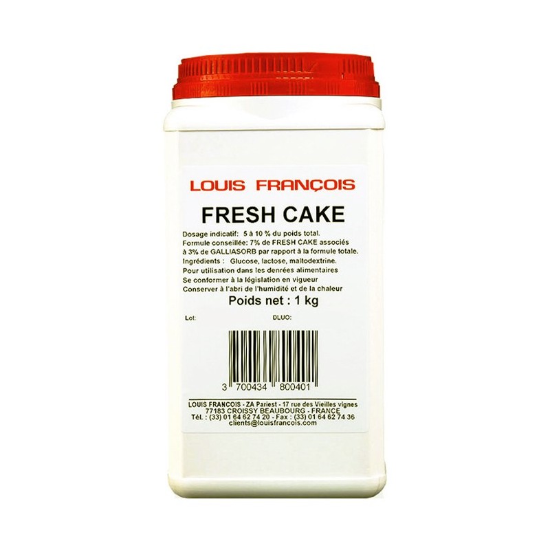 Composé de sucres simples, le Fresh Cake est vivement conseillé dans la fabrication de cakes, génoises, biscuits de Savoie, madeleines, pains de gènes, roulés, macarons, pâtes d'amandes... Il permet de conserver le moelleux, ralentit l'apparition de moisissures et fixe les arômes tout en améliorant la texture et le fondant de vos produits.