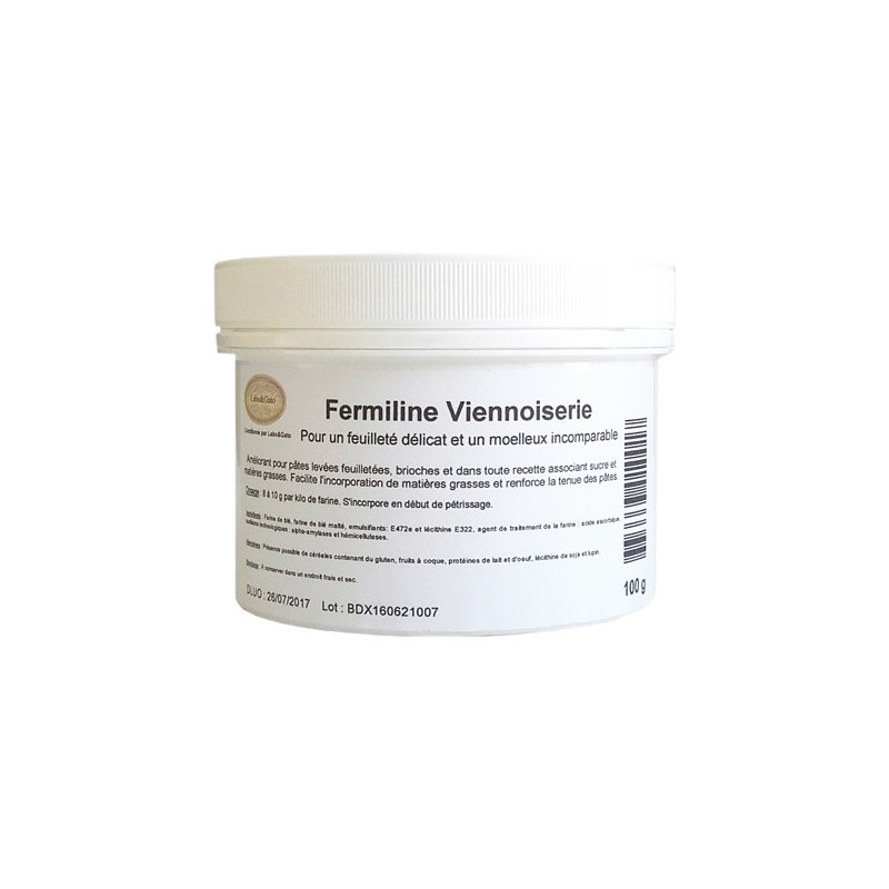 Fermiline® Viennoiserie est un améliorant pour pâtes levées feuilletées (croissant, pain au chocolat, pain aux raisins,...), brioches et dans toute recette associant sucre et matières grasses.