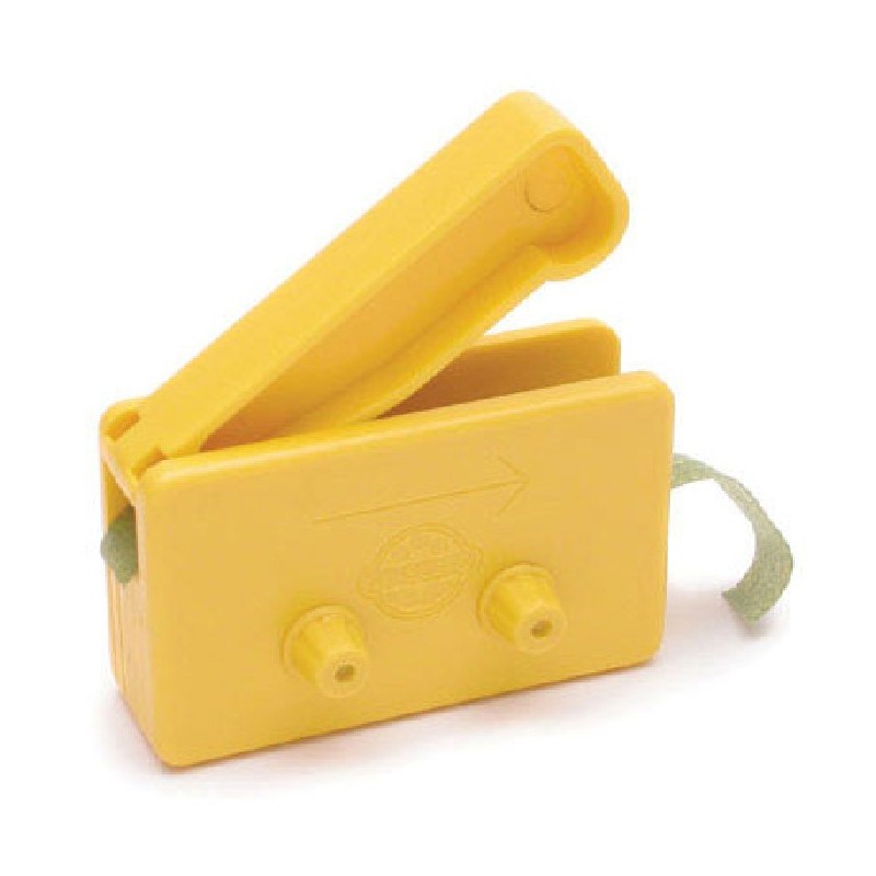 Cet appareil facilite la coupe du ruban au quart ou à la moitié de la largeur.