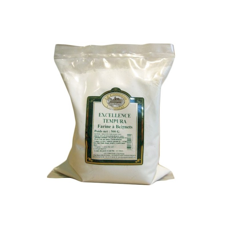 La farine "excellence tempura" est une farine préparée spécialement pour réussir les délicats beignets japonais qui composent une tempura. Tout peut être transformé ou presque (éviter les tomates et légumes trop juteux ainsi que le bœuf et le porc qui ont tendance à durcir).