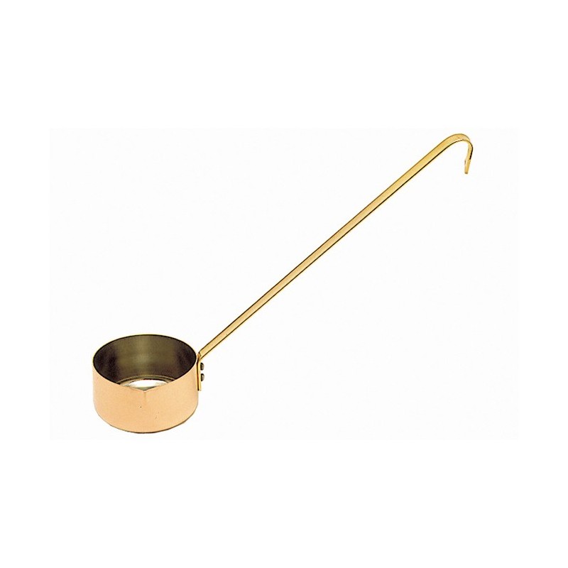 Cuivre lisse poli, intérieur nickelé, queue en bronze poli, rivetée.