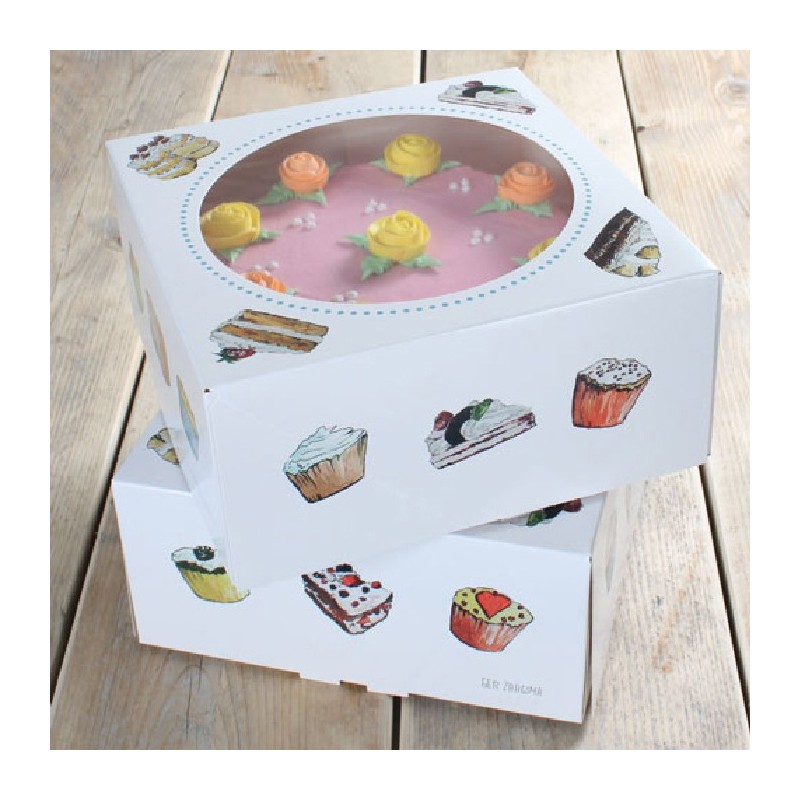 Ravissante boîte à fenêtre carrée avec des petits cakes pour motif.