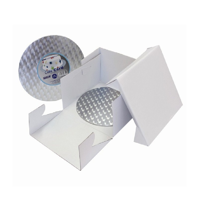 Boîte à gâteau carrée solide, avec support à gâteau rond d'une épaisseur d'environ 3 mm.
