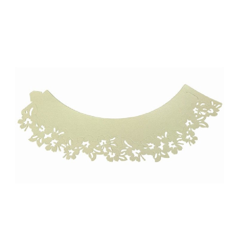 Jeu de 12 caissettes à cupcake aux élégants motifs en dentelle. Avec leur système de fermeture unique, elles sont faciles à monter. Ces caissettes donneront un air de fête à vos cupcakes.