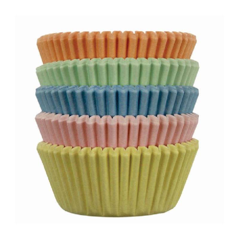 5 séries de 20 mini caissettes en papier aux couleurs pastel.