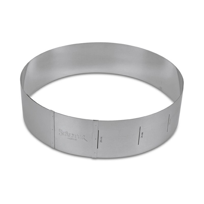 Moule rond, robuste et ajustable, d'une hauteur de 7 cm ! Placez sous le cercle à gâteau 2 couches de papier cuisson, l'une au format de votre gâteau pour faciliter son retrait de la plaque à pâtisserie. L'anneau à gâteau, réglable de 18 à 30 cm de diamètre, porte des repères pour simplifier cette opération.