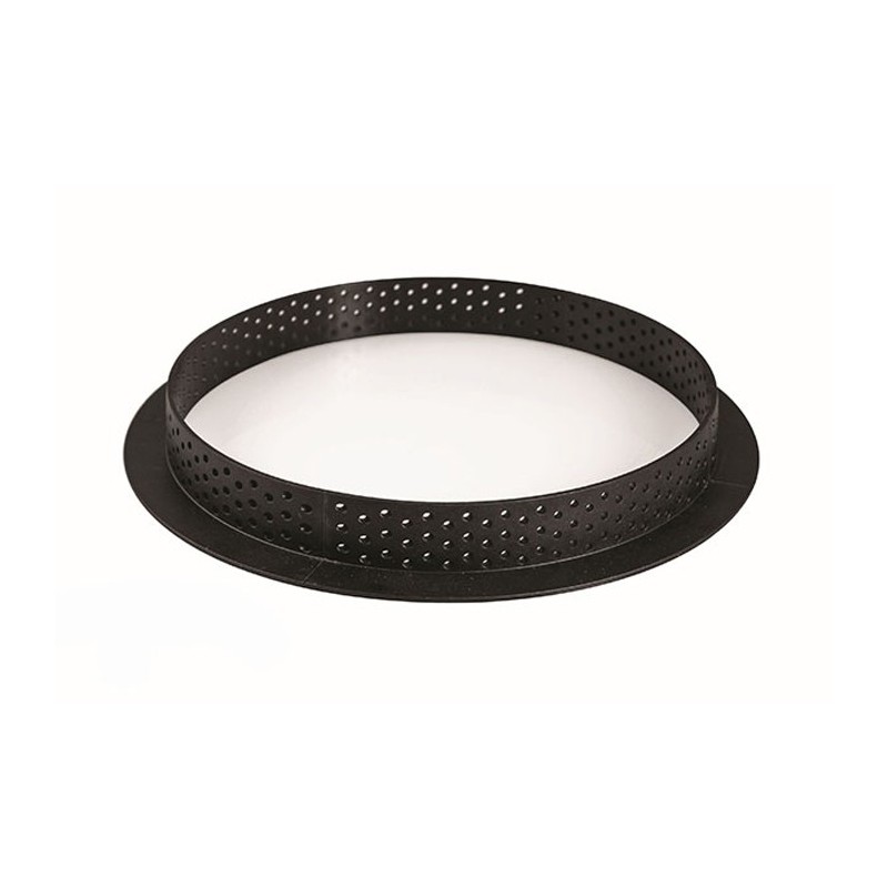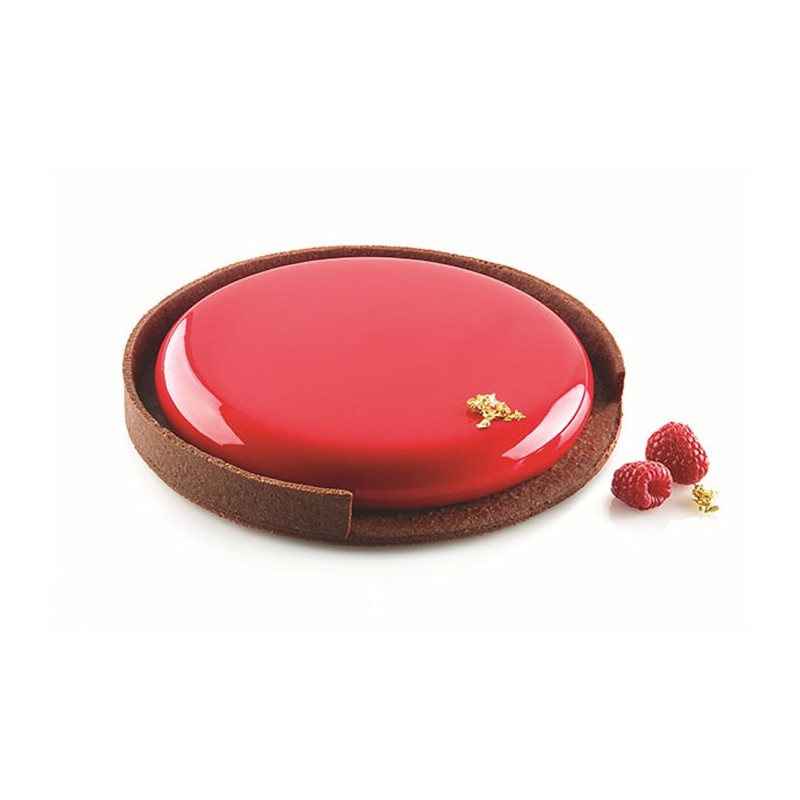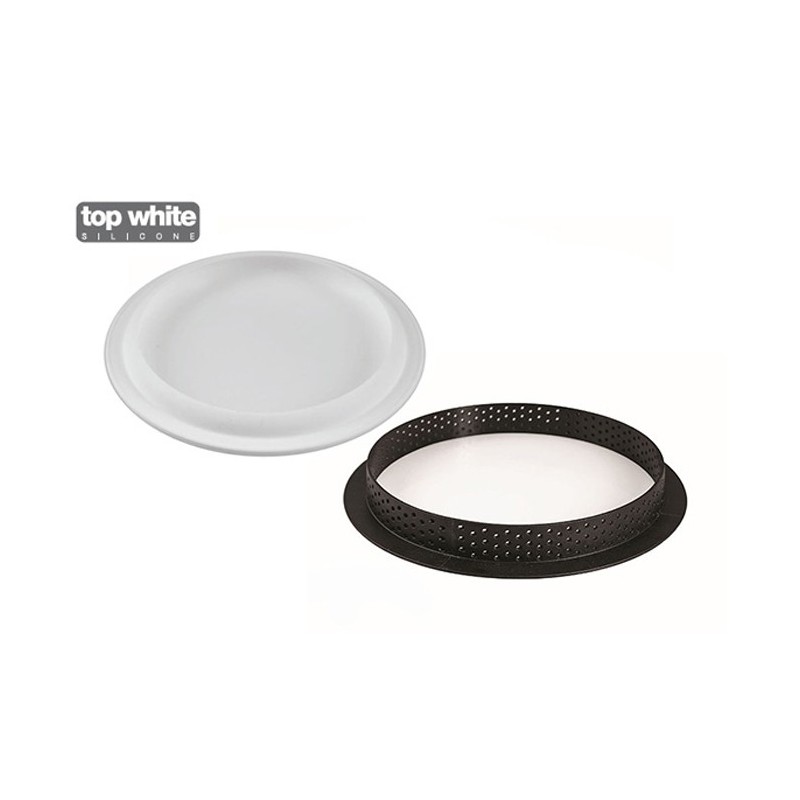 La tarte, le dessert de la tradition se présente dans un nouvel aspect grâce au Kit Tarte Ring de Silikomart Professional. Le kit est composé par deux éléments: un anneau de 190 mm de diamètre en matériau thermoplastique indéformable, utilisables dans le four jusqu’à 180°C, pensé pour la réalisation de la base et en plus il y a un moule en silicone de 160 mm de diamètre pour réaliser une mousse ou un crémeux à poser au-dessus de la base. L’anneau est antiadhésive, inoxydable, il permet une cuisson homogène et il a une grande stabilité thermique. Il peut être utilisés en four et dans le surgélateur, il ne peut pas entrer en contact avec des flammes nues ou bien être utilisé dans le micro-ondes. La tarte réalisée avec le Kit Tarte Ring se confirme comme une préparation qui ne sera jamais démodée et son moderne classicisme vous laissera doucement surpris.