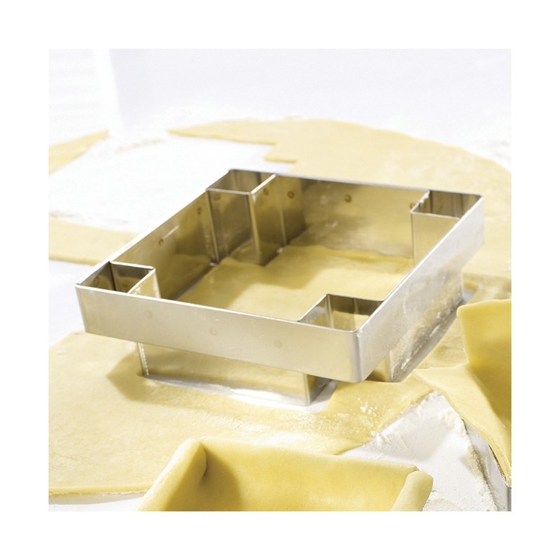 Ces carrés et leurs découpoirs adaptés permettent de réaliser facilement des fonds de tartelettes et tartes carrées aux contours nets, sans surplus de pâte dans les angles. Découpoirs robustes avec ceinture de renfort.