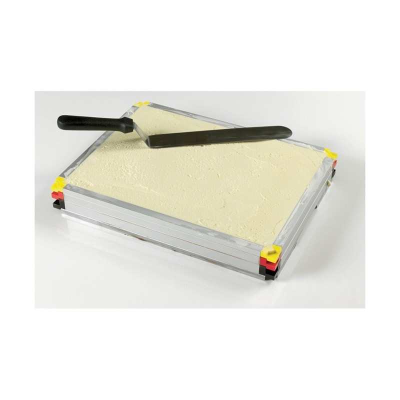 Système exclusif créé par Matfer permettant le montage rapide et simple de plaques d'entremets, de mousses, d'opéras en couches parfaitement régulières de 2 ou 3 parfums, voire d'avantage.