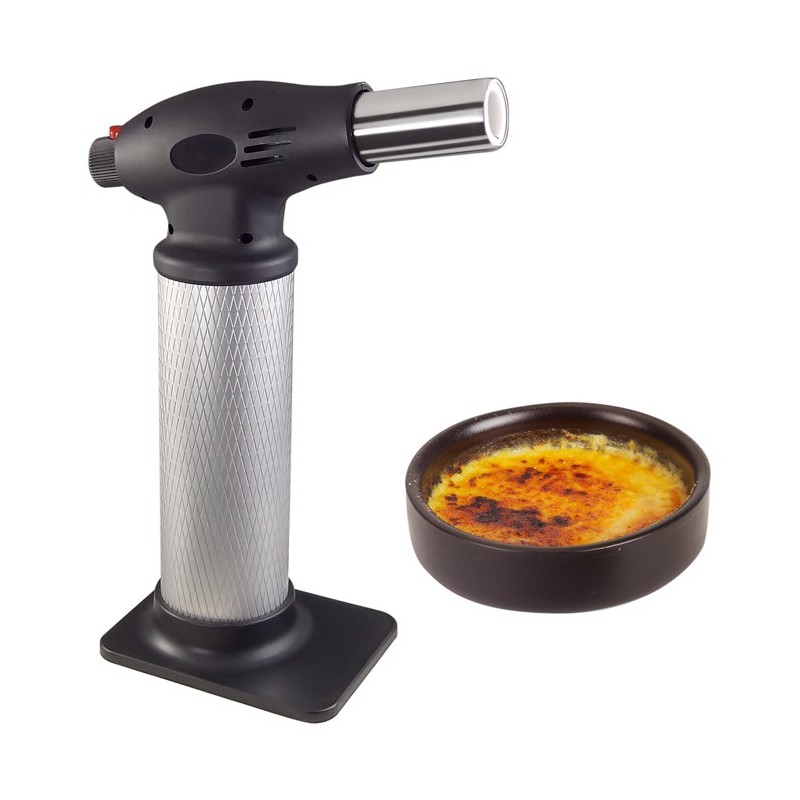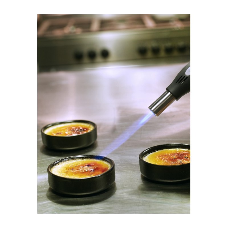 Chalumeau à gaz professionnel, indispensable pour le montage de pièces en sucre, la réalisation de crèmes brûlées, meringues, flans, omelettes norvégiennes, desserts caramélises, fromages fondants, ... etc.