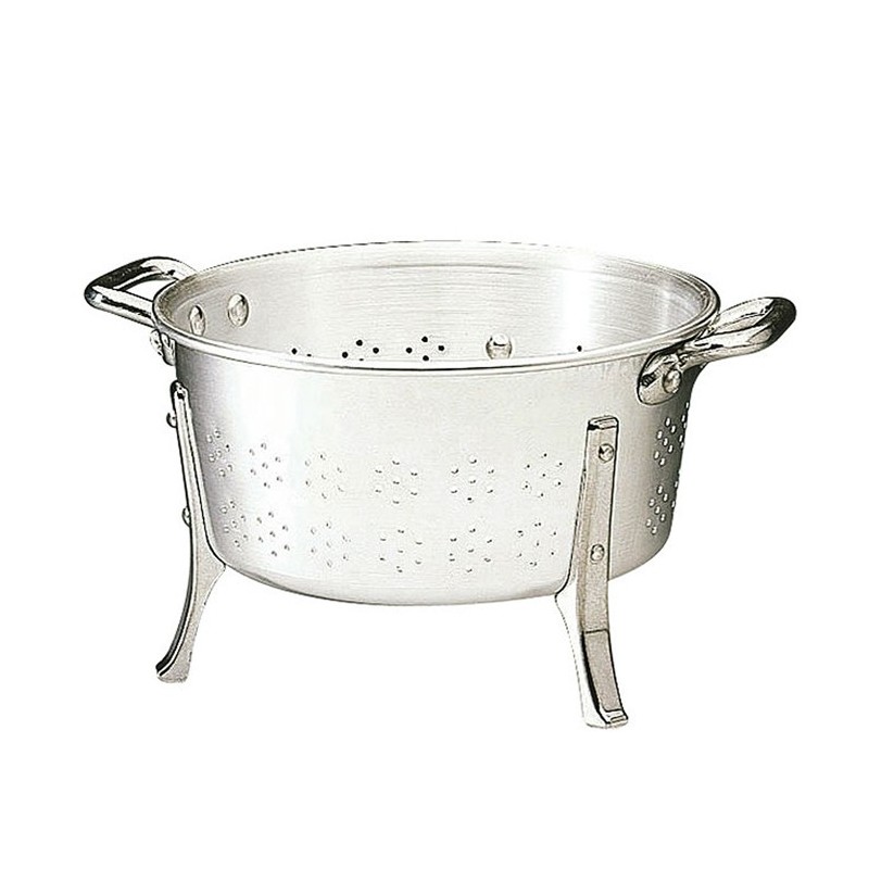 Passoire à gras, aluminium. 3 pieds, 2 poignées rivetées.