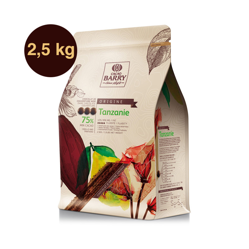 Alliant harmonieusement l'acidité à l’amertume intense du cacao, ce chocolat de couverture noir Origine Tanzanie s'agrémente de belles notes florales.