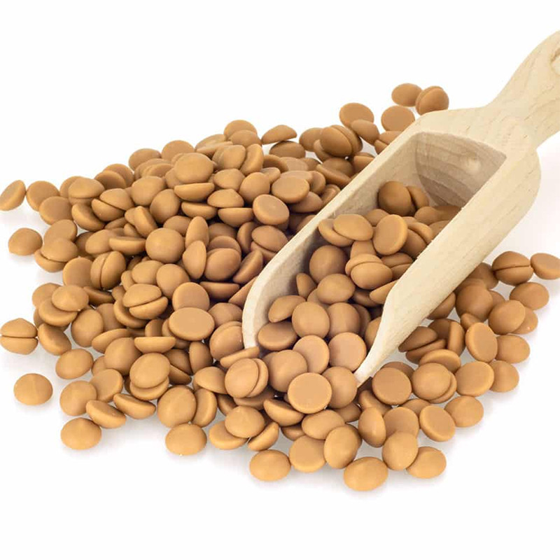 Chocolat blanc au caramel Barry-Callebaut (30,4 % cacao) : une couleur dorée et un goût riche en caramel, beurre et toffee, avec une pointe de sel. Forme pratiques et fluidité moyenne – parfait pour moulages, enrobages, mousses et pâtisseries.