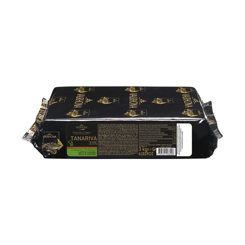 Blocs (3 x 1 kg) de chocolat au lait Valrhona Tanariva 33% de cacao, Grand Cru Madagascar.
