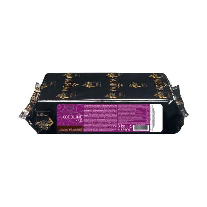 Blocs (3 x 1 kg) de chocolat noir sans sucres ajoutés Valrhona Xocoline Noire 65% de cacao, Création Gourmande.