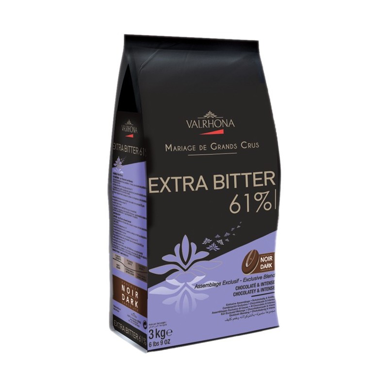 Fèves de chocolat noir Valrhona Extra Bitter 61% de cacao, Mariage de Grands Crus.