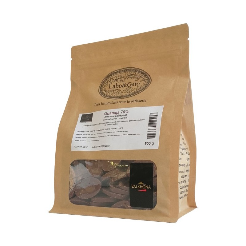 Fèves de chocolat noir Valrhona Guanaja 70% de cacao, Mariage de Grands Crus.