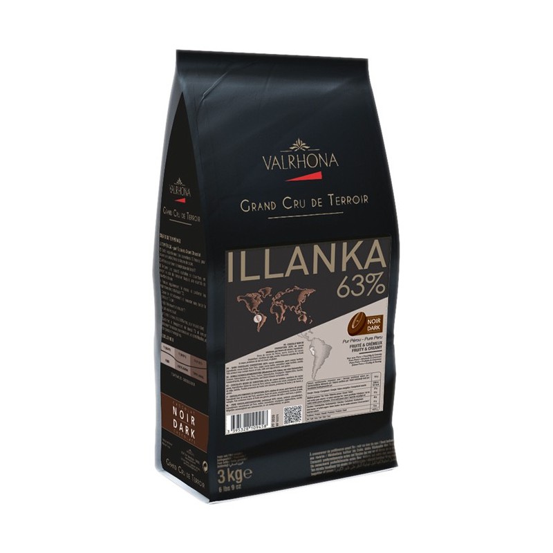 Fèves de chocolat noir Valrhona Illanka 63% de cacao, Grand Cru Pérou.