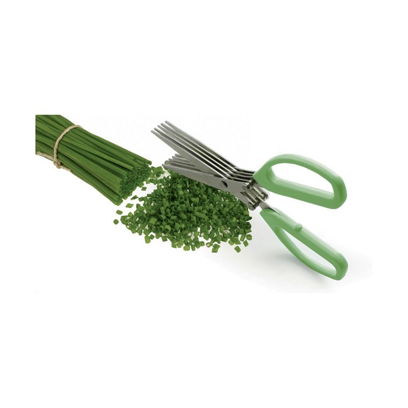 Ciseaux à 5 lames en acier inoxydable trempées et polies. Pour ciseler les fines herbes de façon régulière.