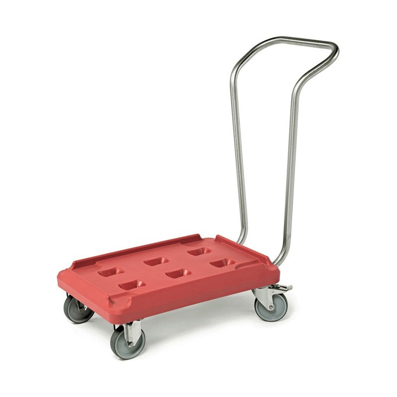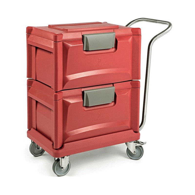 Avec ou sans poignée ergonomique, la forme des socles rouleurs "Sherpa" est étudiée pour assurer un parfait calage des conteneurs GN isothermes à ouverture frontale ou dessus.