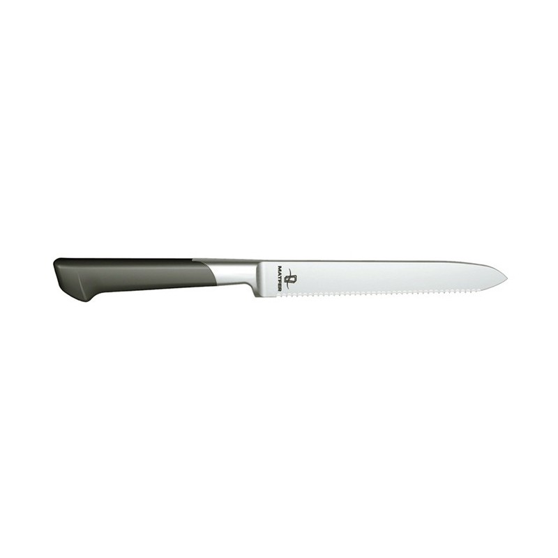 Lame crantée idéale pour couper les tomates, agrumes, baguettes de pain et tous les produits à peau fine.