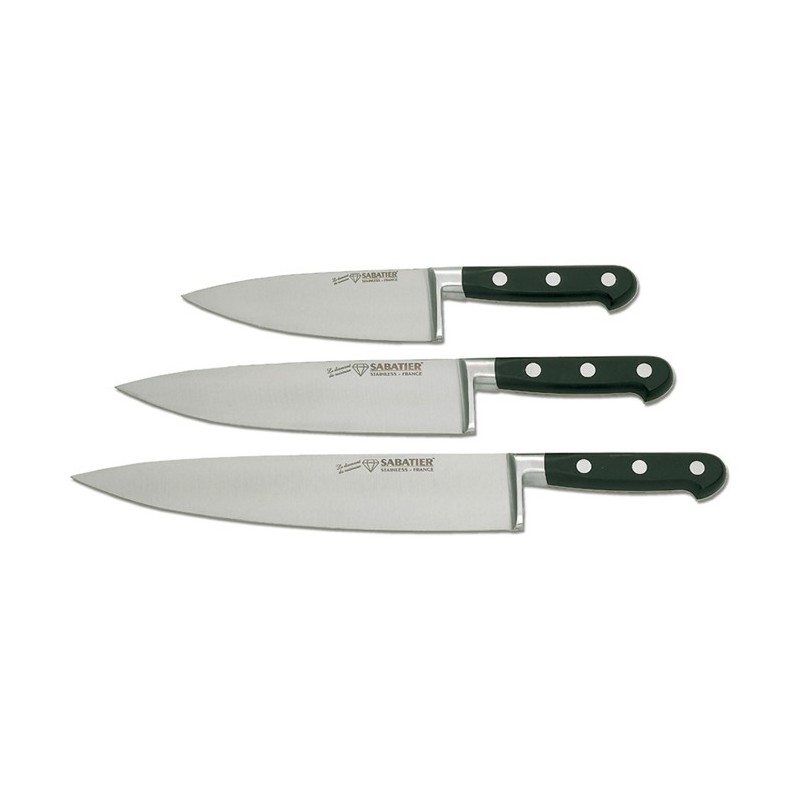 Couteaux alliant robustesse de fabrication et légèreté grâce à leur mitre aluminium sertie sur une lame inox.